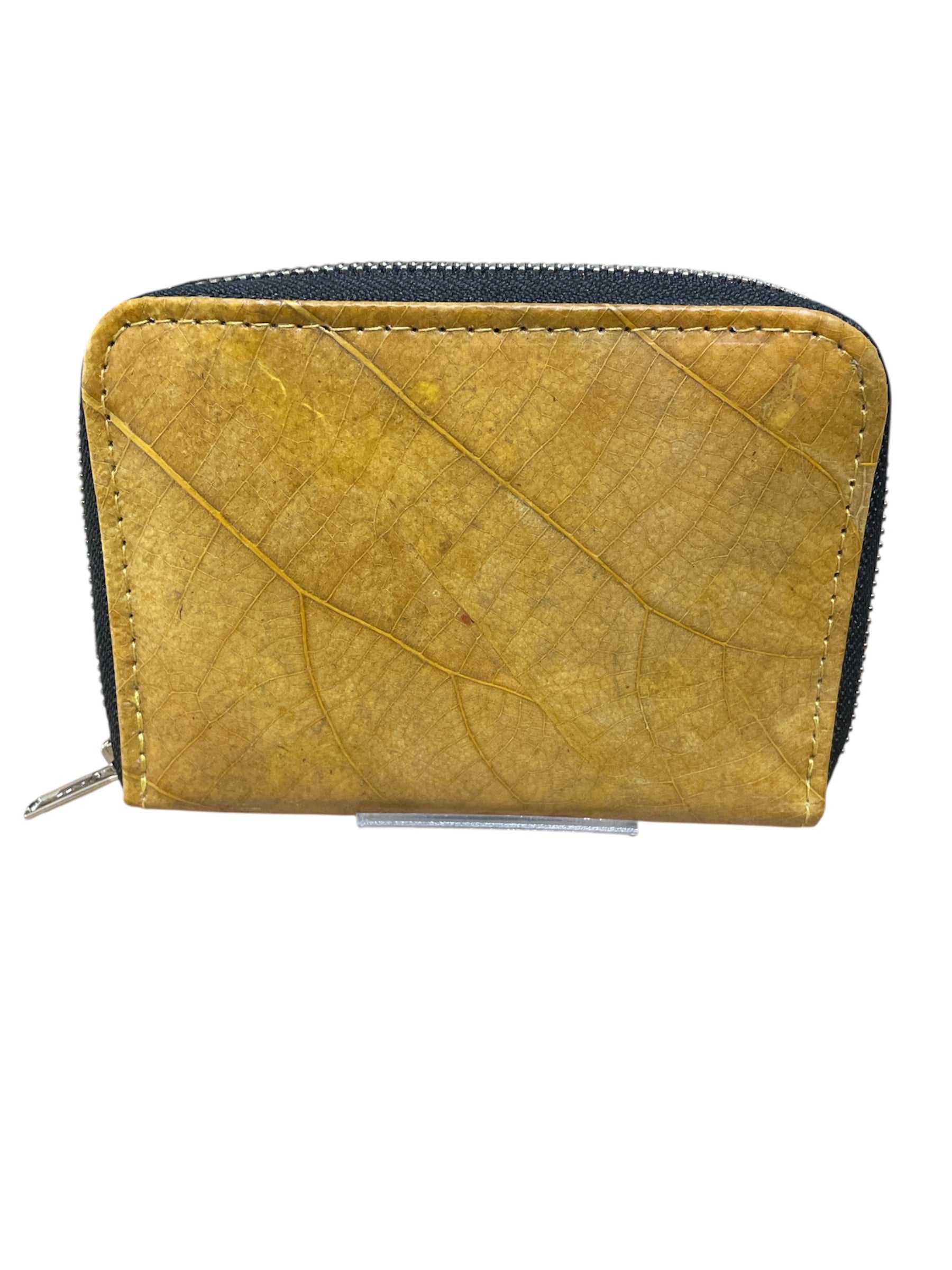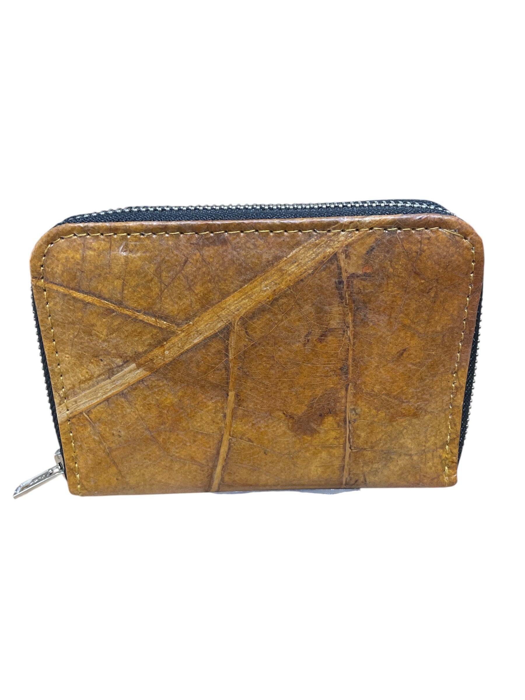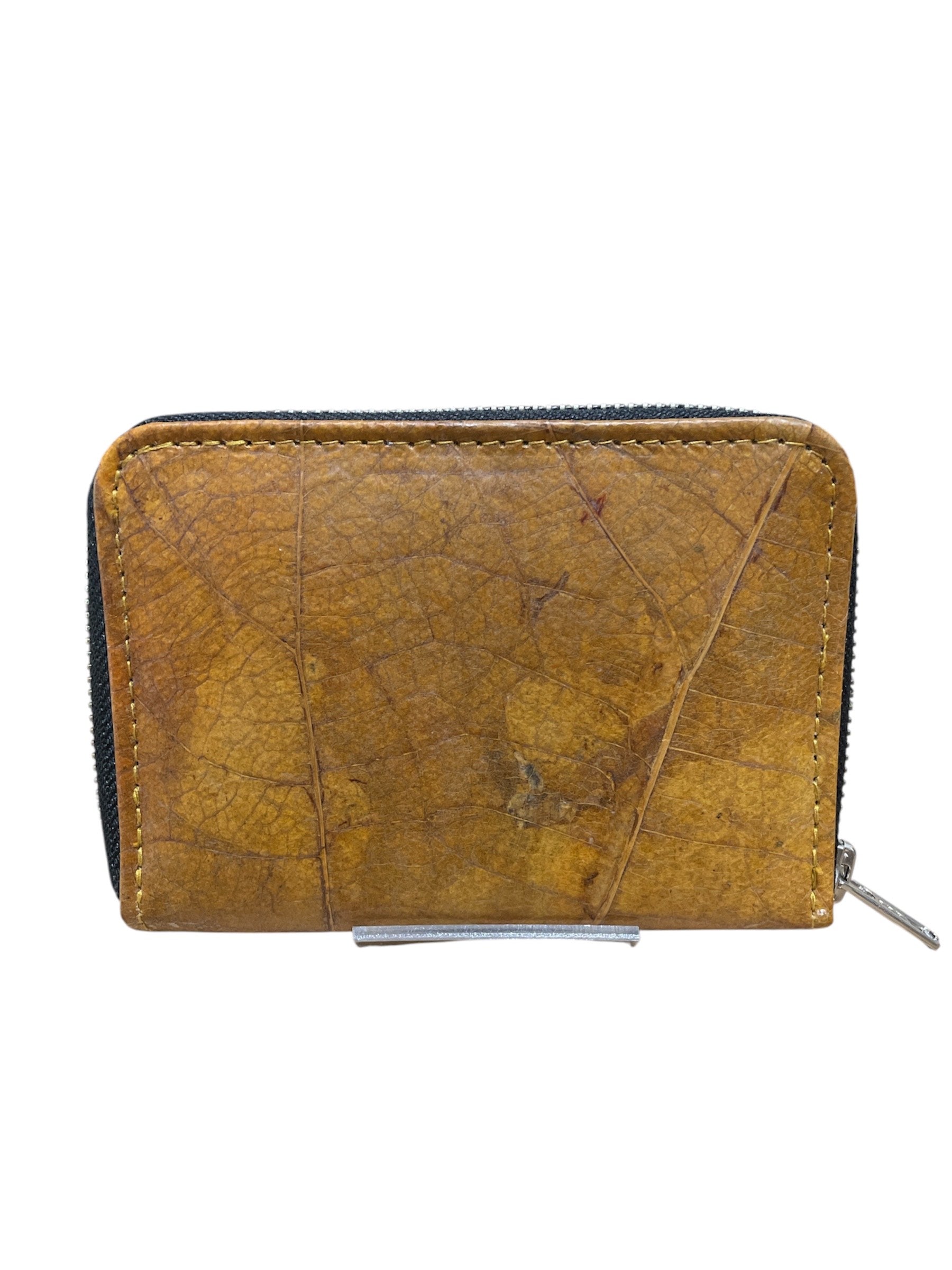 自然の葉をそのまま活かした「リーフレザー」で作られたコンパクトウォレット。