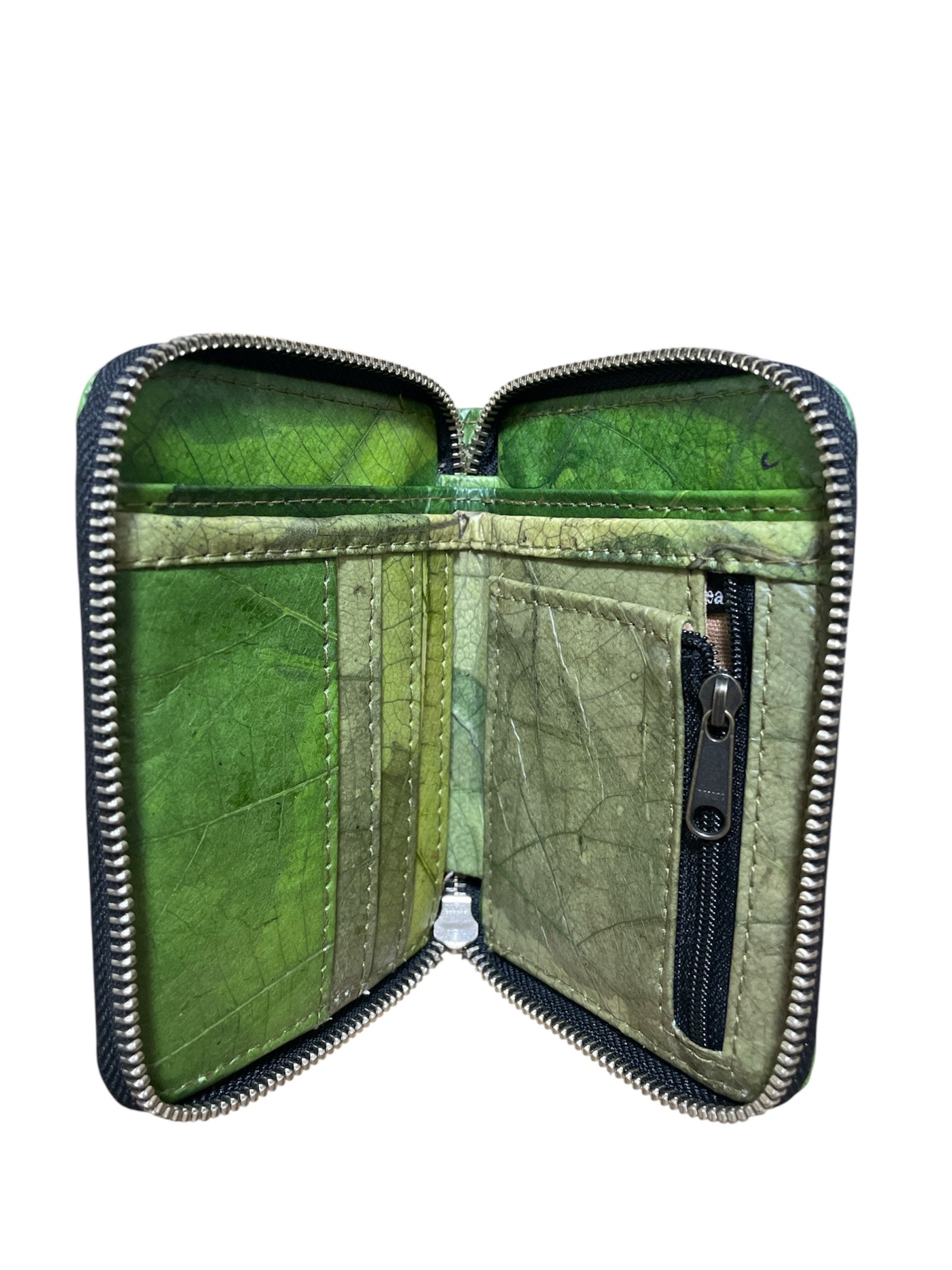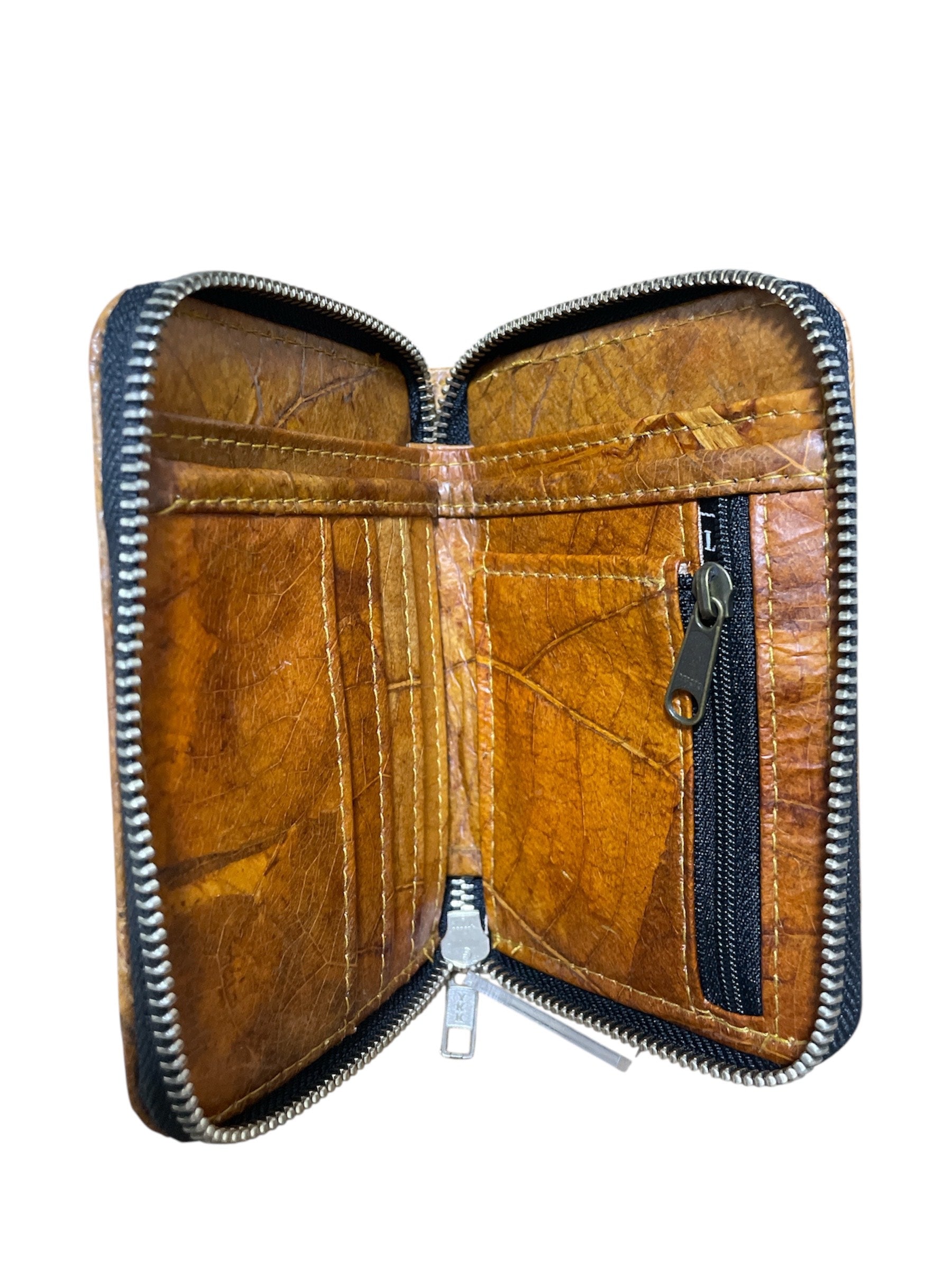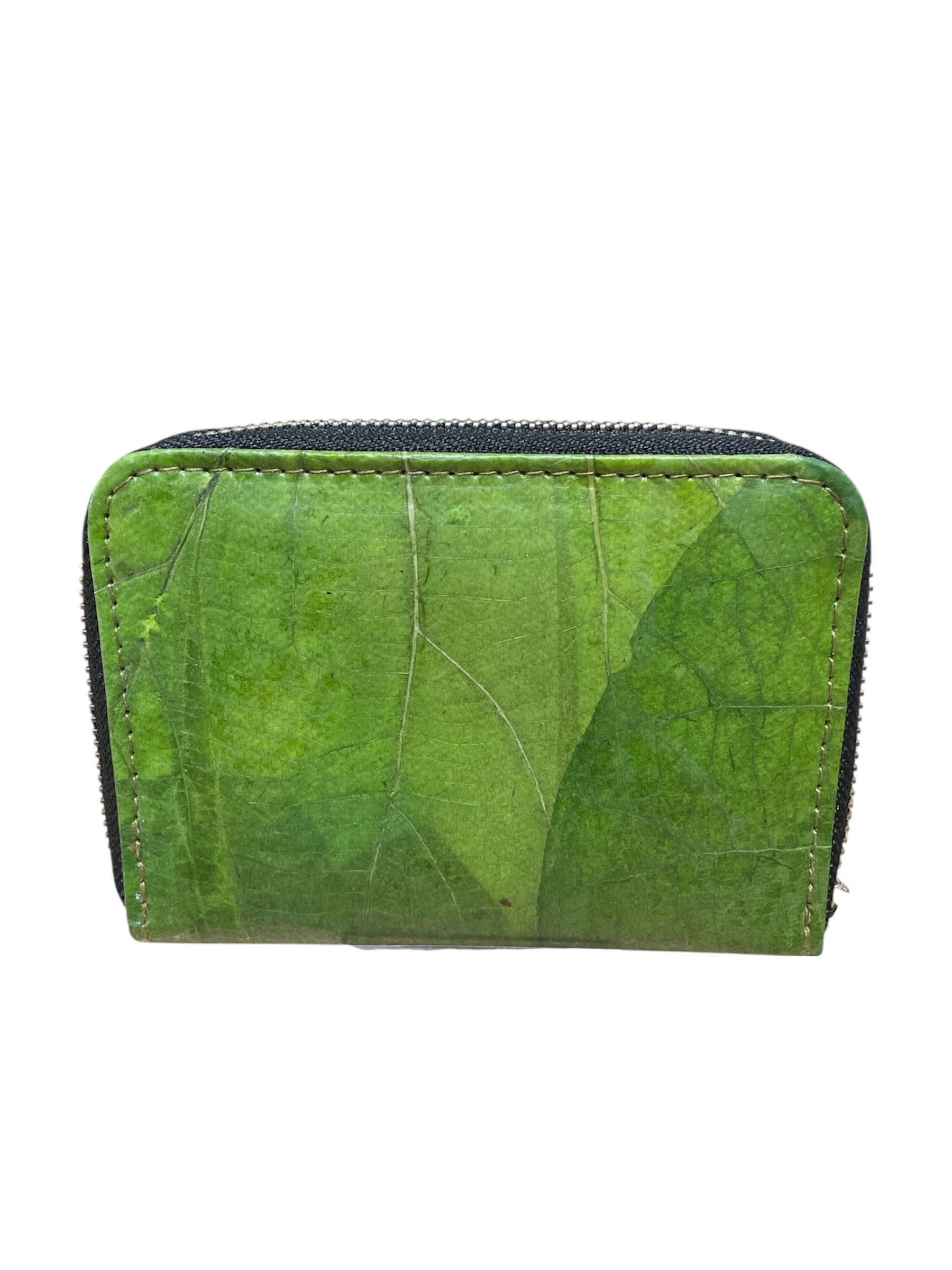 自然の葉をそのまま活かした「リーフレザー」で作られたコンパクトウォレット。